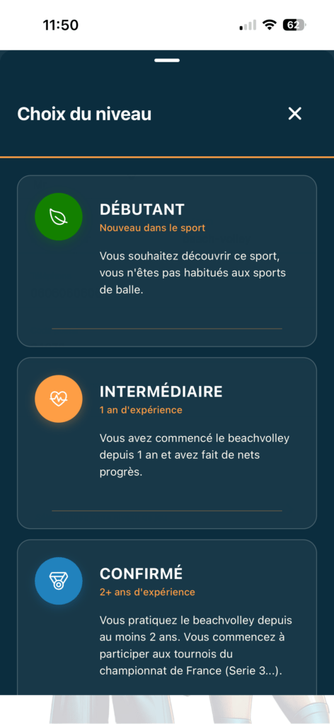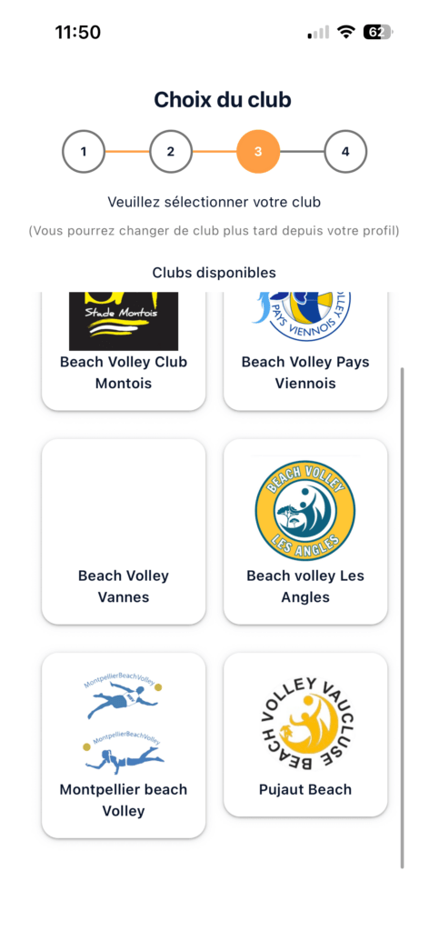 Puis choisissez votre niveau de groupe renseigné lors de votre adhésion.