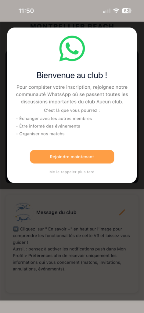 N’hésitez pas à rejoindre le WhatsApp du club !