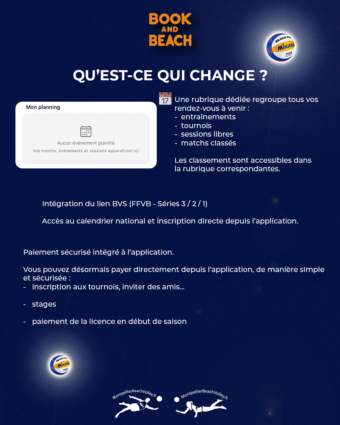 La version 3 de Book and Beach améliore votre expérience au sein du club en rendant l’application plus simple, plus pratique et plus conviviale. Cette mise à jour facilite l’accès à l’information, l’inscription aux événements et la pratique du beach-volley au quotidien.